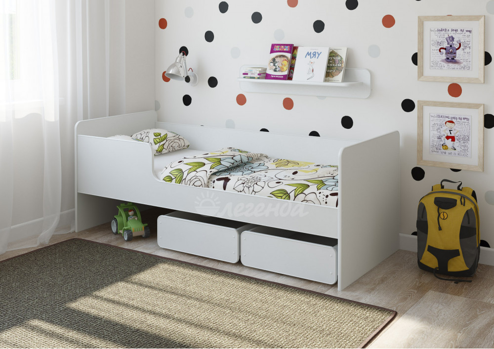 В комплект детской кровати от 3 лет Легенда 40 входят два удобных ящика на колёсиках.Ящики легко закатываются и выкатываются,с этим без труда справится ребенок.